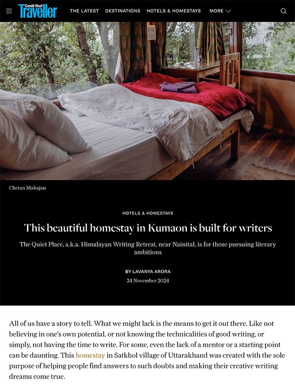 The Quiet Place Himalayas is a boutique retreat, situated in a little Himalayan Orchard on a ridge with breathtaking panoramic views. It is a place to take a step back, to leave the extremities and sway gently in harmony with the rhythm of the mountains, the trees, the flowers, the birds and the bugs.